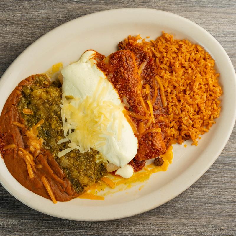 Dinners include 2 enchiladas served with rice & refried or charro beans. Topped with your choice of sauce: Chili, Queso, Sour Cream, Ranchera or Salsa Verde. *Sour Cream Is Not Gluten Free