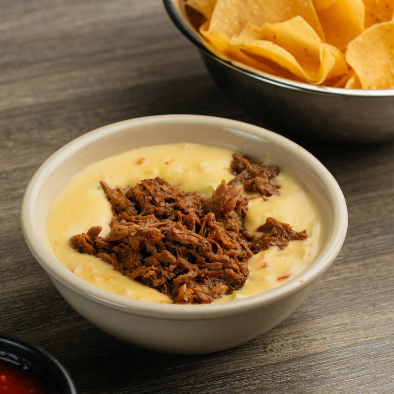 Large yellow or white queso with marinated steak taco meat | (GF)