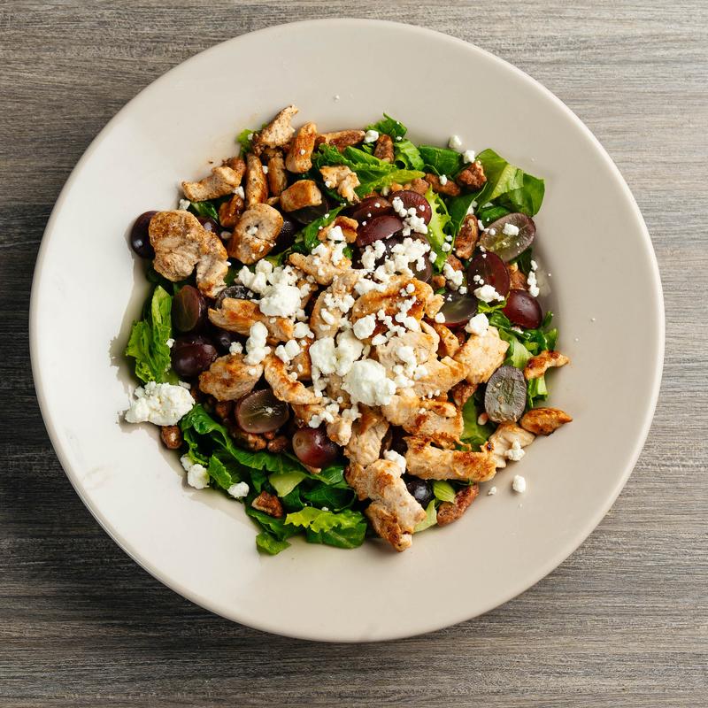 Seasoned grilled chicken with butter lettuce, red grapes, candied pecans, & goat cheese | (GF)